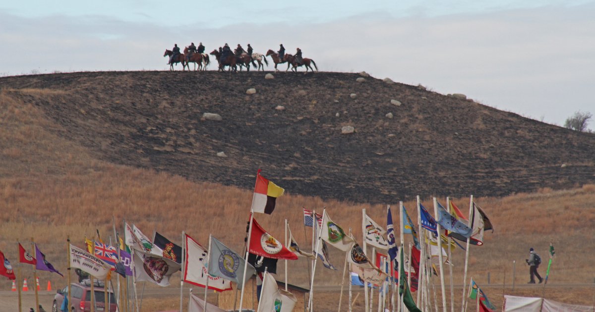 In 2016, in response to the construction of the Dakota Access Pipeline (DAPL), members of the Standing Rock Sioux Tribe launched the #NoDAPL campaign to stop the construction of a pipeline that would violate Indigenous land sovereignty and potentially contaminate the tribe’s drinking water. Now complete, the DAPL spans 1,172 miles across the Dakotas, Iowa, and Illinois, potentially posing a major threat to the Standing Rock Sioux’s drinking water. Thousands of Indigenous people and allies gathered at protest camps in North Dakota to block DAPL construction, where they were met with violence and surveillance—much of it focusing on Indigenous activists—at the hands of law enforcement and the private security firm TigerSwan, which DAPL owner Energy Transfer Partners (ETP) hired to suppress the protests. An FBI Joint Terrorism Task Force also monitored #NoDAPL participants, as first reported by the Guardian.