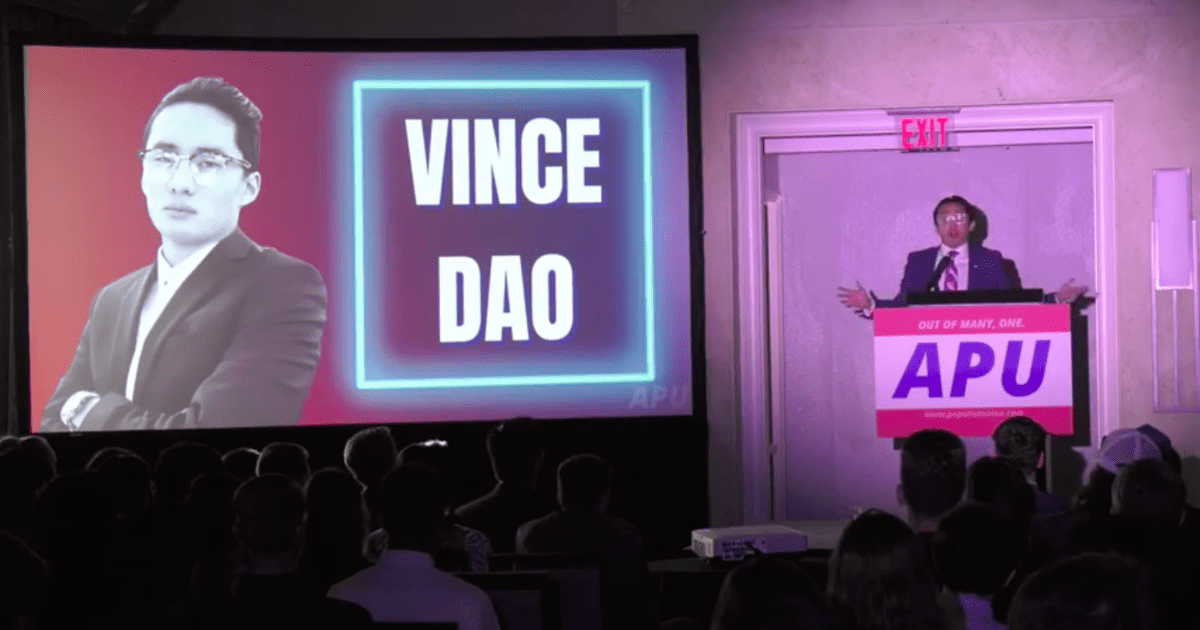 On Monday, July 19, 2021 in Tampa, Florida, as the Student Action Summit of Turning Point USA (TPUSA) drew to a close, a new Generation Z group called the American Populist Union (APU) held its inaugural conference just down the street. APU co-founder Vince Dao told a crowd of over 100 young conservatives at the American Populist Summit, “I’m literally 18 years old, we put this together like a month ago, and the energy in this room is insane–we don’t even have enough chairs!”