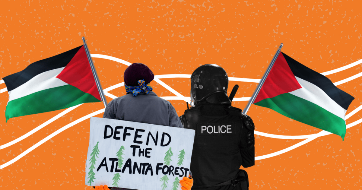 While organizing over the last four years against Atlanta’s Cop City, activists have encountered police violence and faced numerous serious charges;[27] testified for over 13 hours to Atlanta City Council;[28] petitioned for referendum votes;[29]; and been detained and physically harassed during SWAT-like raids,[30] with limited success for their efforts. Similarly, Palestine solidarity activists have been brutalized by law enforcement[31] and counterprotesters with unknown chemical agents[32] and guns;[33] doxxed by Zionist organizations;[34] fired from their jobs;[35] arrested for protesting in elected officials’ offices;[36] and in the case of Representative Rashida Tlaib, censured by her House colleagues for using the phrase “from the river to the sea” on social media.[37] How can activists organize and mobilize movements if they are maligned and criminalized for every way they dissent?