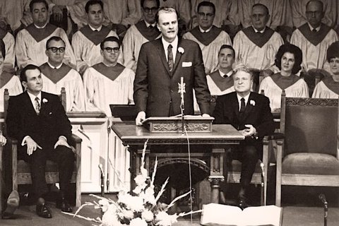 Billy Graham, by any measure the most famous religious figure of the twentieth century, died today [at his home in Montreat, North Carolina]. He was ninety-nine years old. In a career that extended well over half a century, Graham took a simple evangelical message – give your heart…