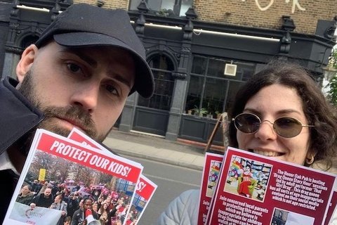 Bullhorns and chants fill the air. Conservatives are gathered to protest a drag show. Mothers and fathers are walking with signs saying “Groomer Free Zone.” Some hold babies while others push their…