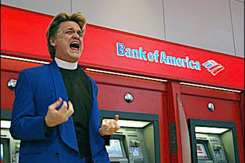 Performance artist or man of God? Agitator or politician? The Church of Life After Shopping’s Reverend Billy has a choir and a congregation like a preacher—does he have to be a “real” clergyman to minister to the masses?